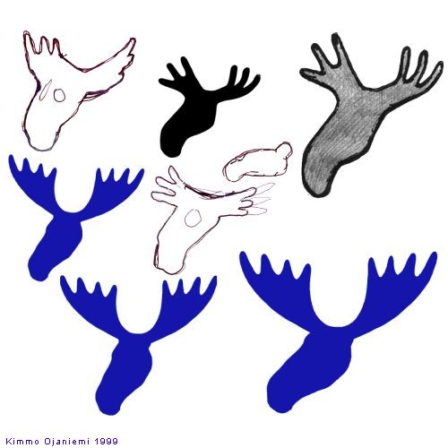 TOINEN HIRVI | TYÖVAIHEET | KUVA 1.1.2000 klo 00.00 | ENSIMMÄINEN HIRVI | KIITOKSET HIRVENHIIHTÄJILLE | PINSSI | THE SECOND ELK IN ENGLISH