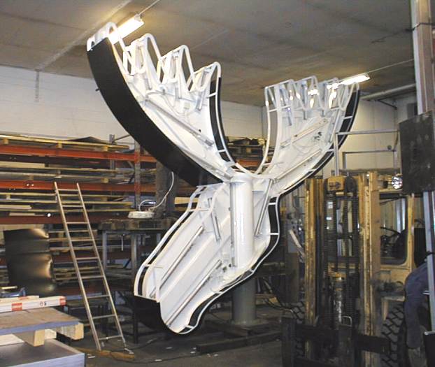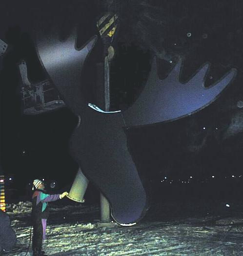 Huittinen is a small but bustling and independent town in southern Finland, about in the middle of the Helsinki - Turku - Tampere-triangle. Almost all I knew about the town was "Huittinen's Elk Head" called ancient hammer. So I had to beguin to learn more about the location. I visited Huittinen several times, trying to understand the nature of the people and the environment. In the beginning I tried to avoid the elk motif as maybe too trivial but after some months I realised that it is a fabulous symbol of developement of the area. Also the approaching new millenium forced me to thoughts about the Second Elk; Frankly the temptation to have a post on the same continuity with the artist who made the mythical first elk's head almost 7000 years ago was very heavy reason for me to make an decision to create The Second Elk